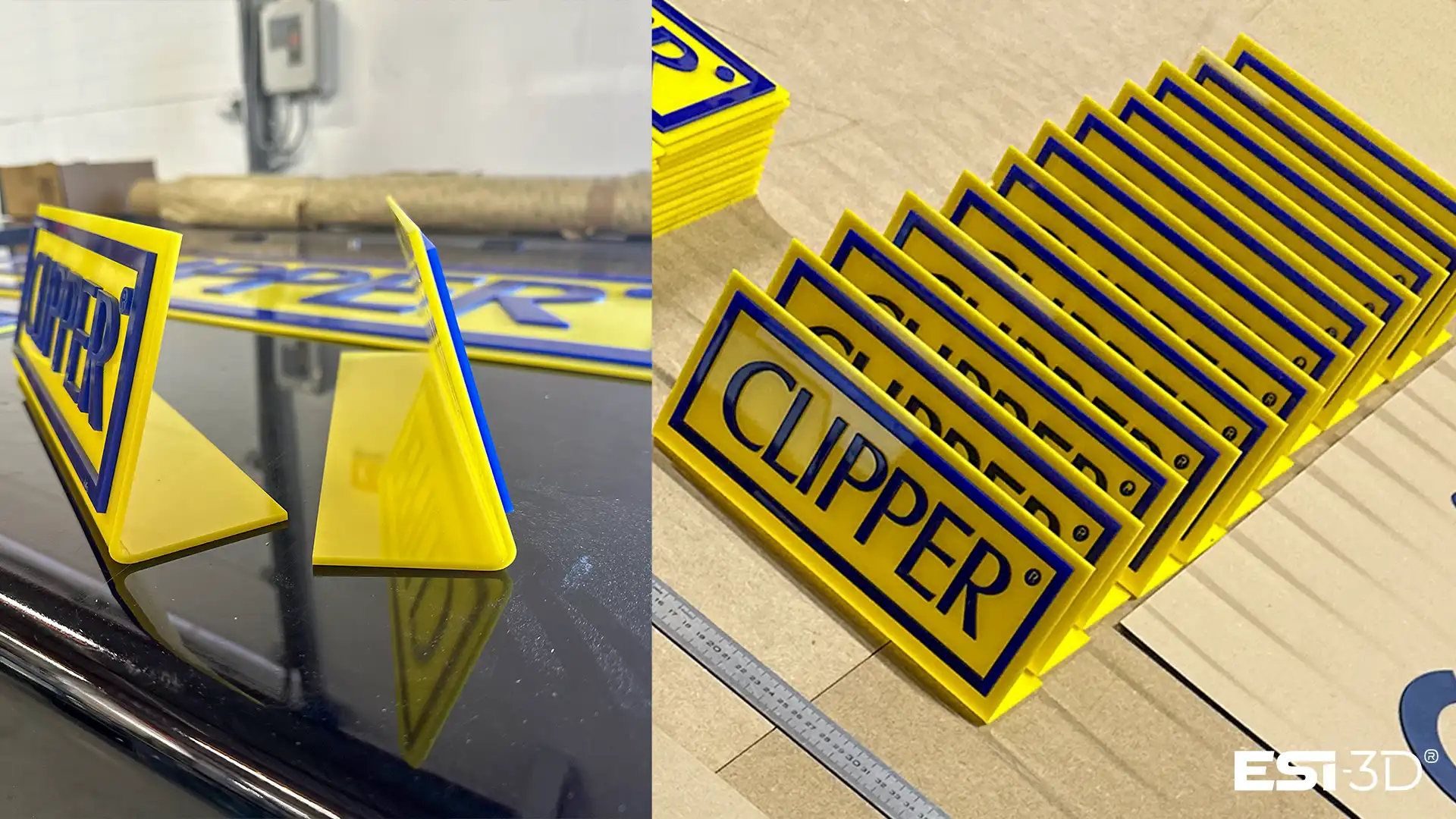 Pour ce projet, ESI-3D a produit une série d’environ 100 chevalets autoportants en plexiglass (PMMA) destinés à être utilisés comme supports de communication sur des comptoirs et présentoirs en point de vente. Ces éléments de PLV de comptoir doivent offrir une bonne stabilité, une visibilité optimale du message et une finition visuelle propre.